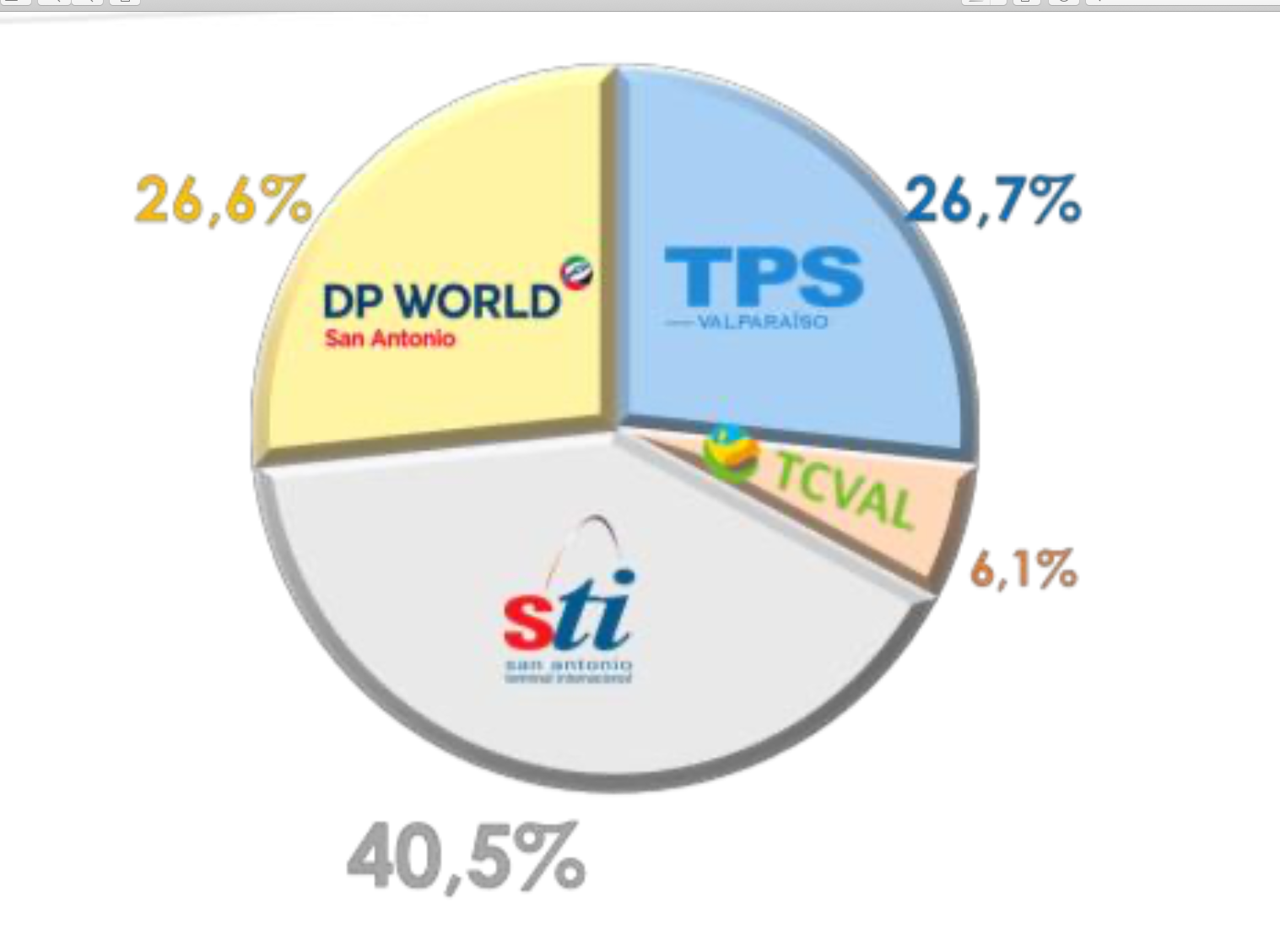 La participación anual de los terminales portuarios de la región se mantiene liderada por STI con el 40,5% de lo transferido, equivalente a 7.754.010 de toneladas. En segundo lugar se encuentra TPS con el 26,7% del mercado, correspondiente a 5.101.446 de toneladas acumuladas. Muy de cerca y en tercera posición, se tiene a DP World con una participación del 26,6% y un total de 5.093.368 toneladas movilizadas. Finalmente, está TCVAL con 1.174.232 toneladas acumuladas, lo que representa el 6,1% del mercado. Esta última concesión ha sido el terminal que ha experimentado el mayor crecimiento del año, con una variación del 41,9% respecto al mismo periodo de 2020.