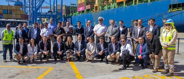 •Autoridades y representantes del sistema logístico del Puerto de Valparaíso dieron el vamos junto a la primera nave que llevará las cerezas nacionales a Asia.