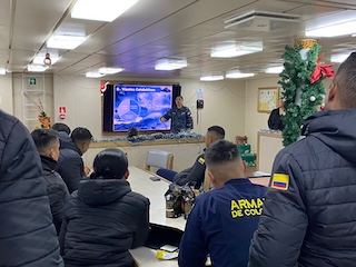 Posterior a la instrucción, en forma de agradecimiento por parte de la unidad, realizaron una visita profesional por las principales dependencias, conociendo las capacidades del ARC 151 “Simón Bolívar” y su historia antártica, así como la experiencia de Colombia en Antártica.