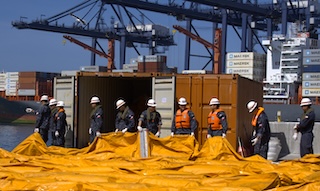 Puerto San Antonio, Armada y concesionarios realizan simulacro de derrame de combustible en el mar